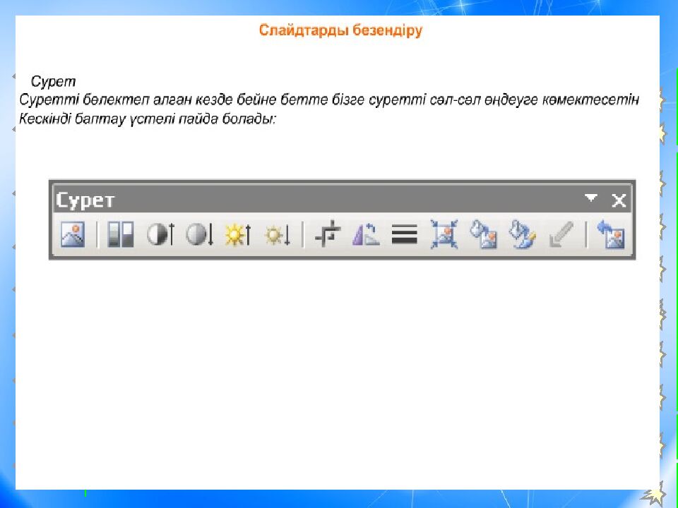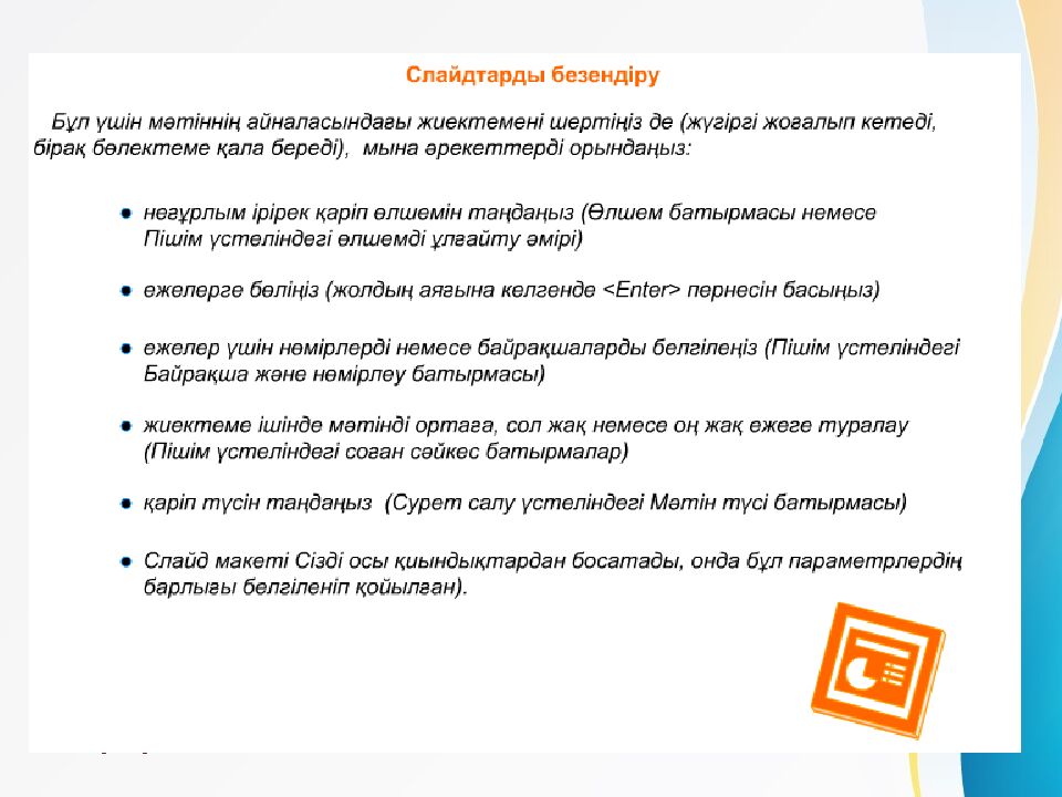 Последний слайд презентации: Тақырыбы: Презентация слайдтарын безендіру
