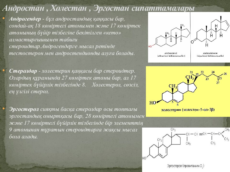 Слайд 6: Андростан, Холестан, Эргостан сипаттамалары