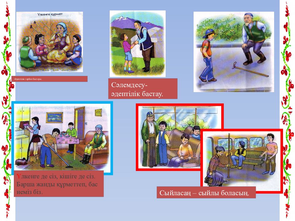 Әдептілік тәрбие бастауы. Сәлемдесу- әдептілік бастау. Ү лкенге де сіз, кішіге де сіз. Барша жанды құрметтеп, бас иеміз біз. Сыйласаң – сыйлы боласың.