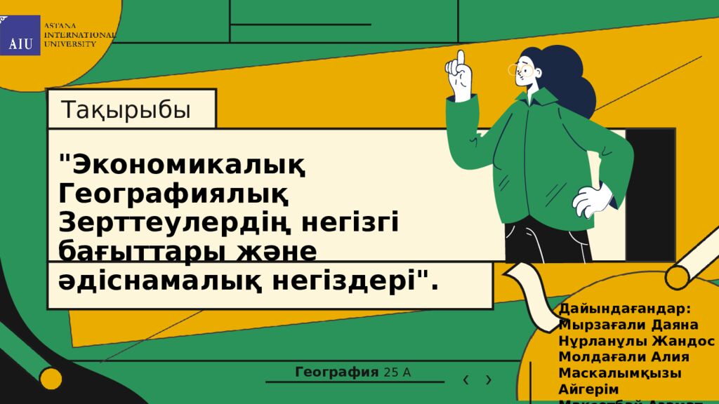 Последний слайд презентации: Тақырыбы География 25 A " Экономикалық Географиялық Зерттеулердің н егізгі б
