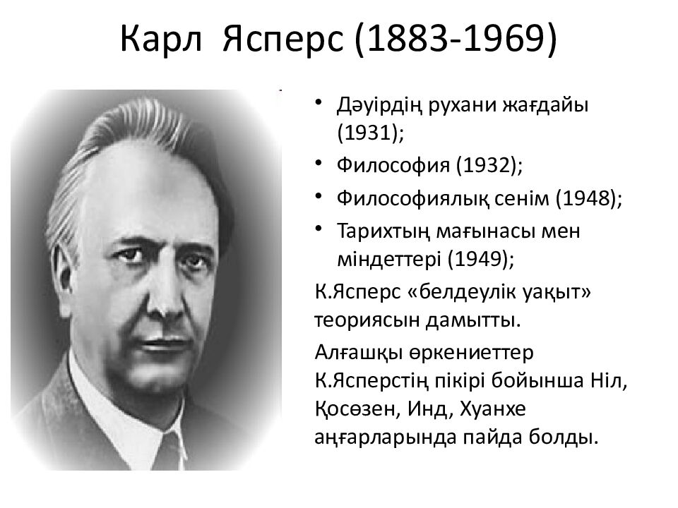 Последний слайд презентации: Тақырып : Мәдениет және өркениет: Карл Ясперс (1883-1969)