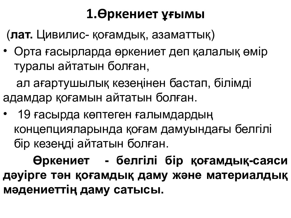 Слайд 2: 1.Өркениет ұғымы
