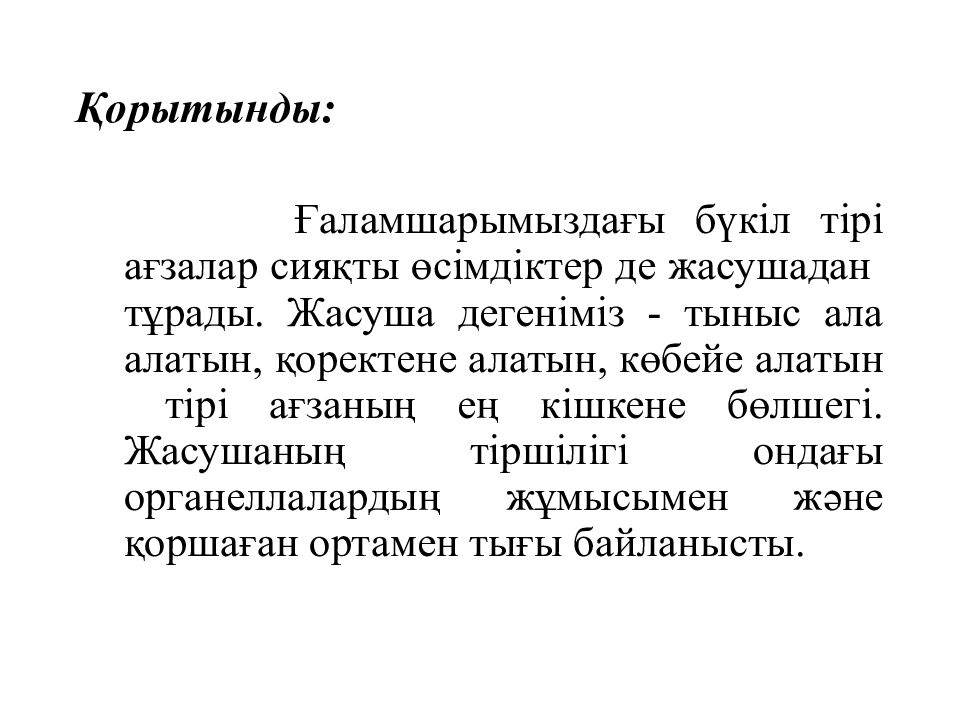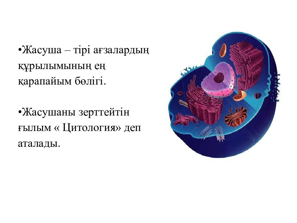•Жасуша – тірі ағзалардың құрылымының ең қарапайым бөлігі. •Жасушаны зерттейтін ғылым « Цитология» деп аталады.