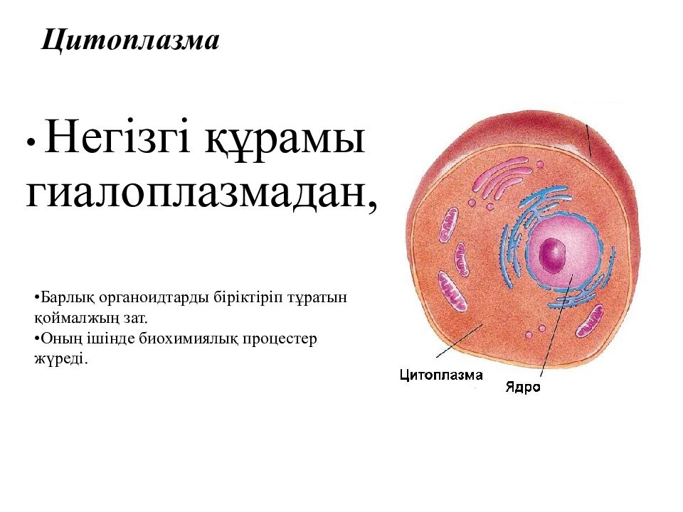 • Н егізгі құрамы гиалоплазмадан, •Барлық органоидтарды біріктіріп тұратын қоймалжың зат. •Оның ішінде биохимиялық процестер жүреді.