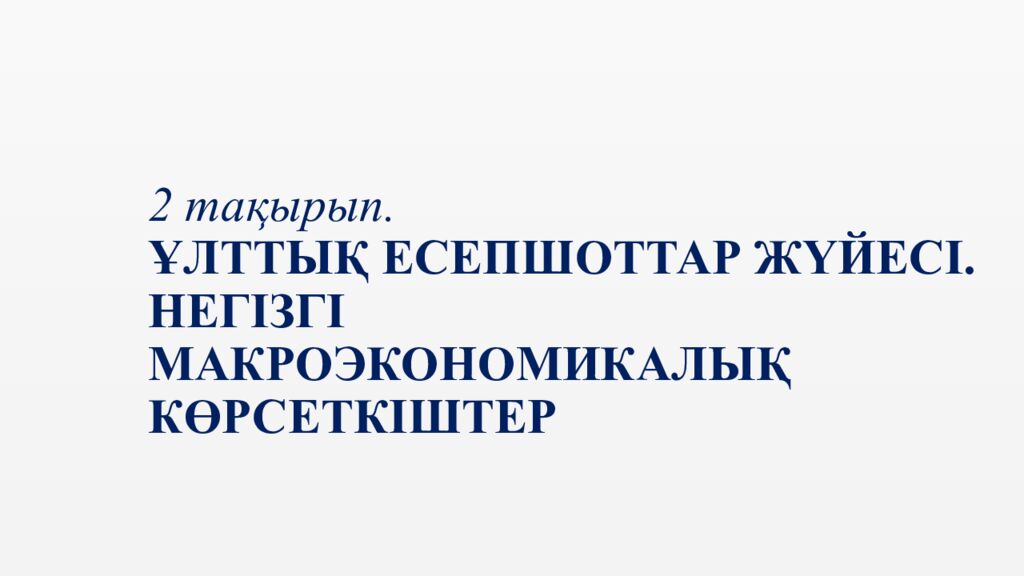 Первый слайд презентации: 2 тақырып. ҰЛТТЫҚ ЕСЕПШОТТАР ЖҮЙЕСІ. НЕГІЗГІ МАКРОЭКОНОМИКАЛЫҚ КӨРСЕТКІШТЕР