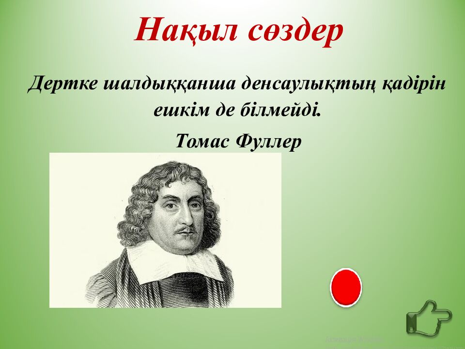 Нақыл сөздер Дертке шалдыққанша денсаулықтың қадірін ешкім де білмейді. Томас Фуллер