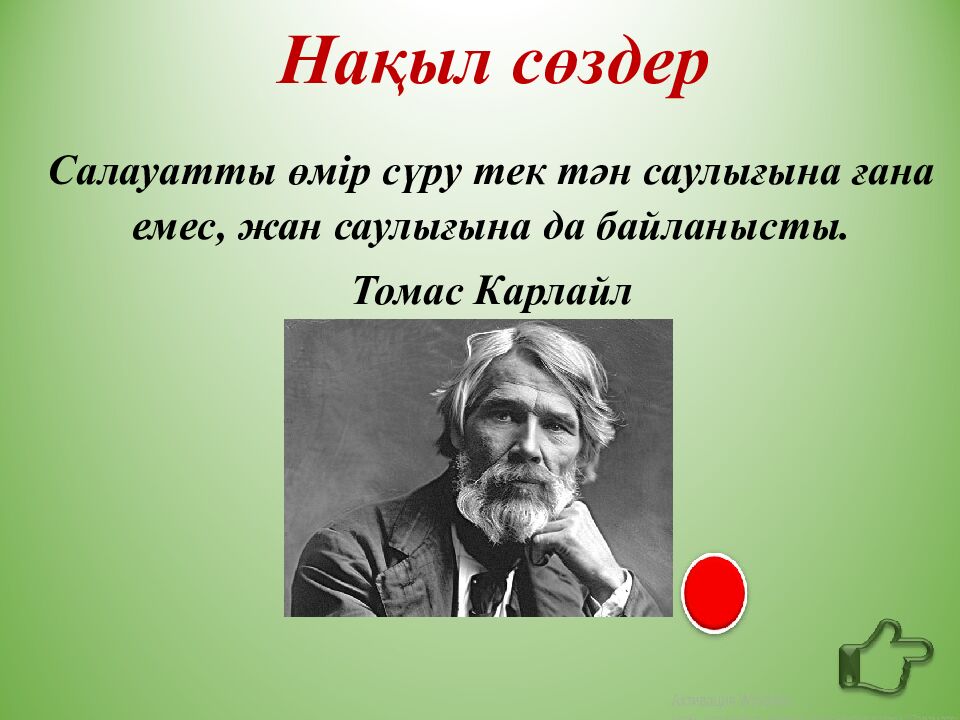 Нақыл сөздер Салауатты өмір сүру тек тән саулығына ғана емес, жан саулығына да байланысты. Томас Карлайл