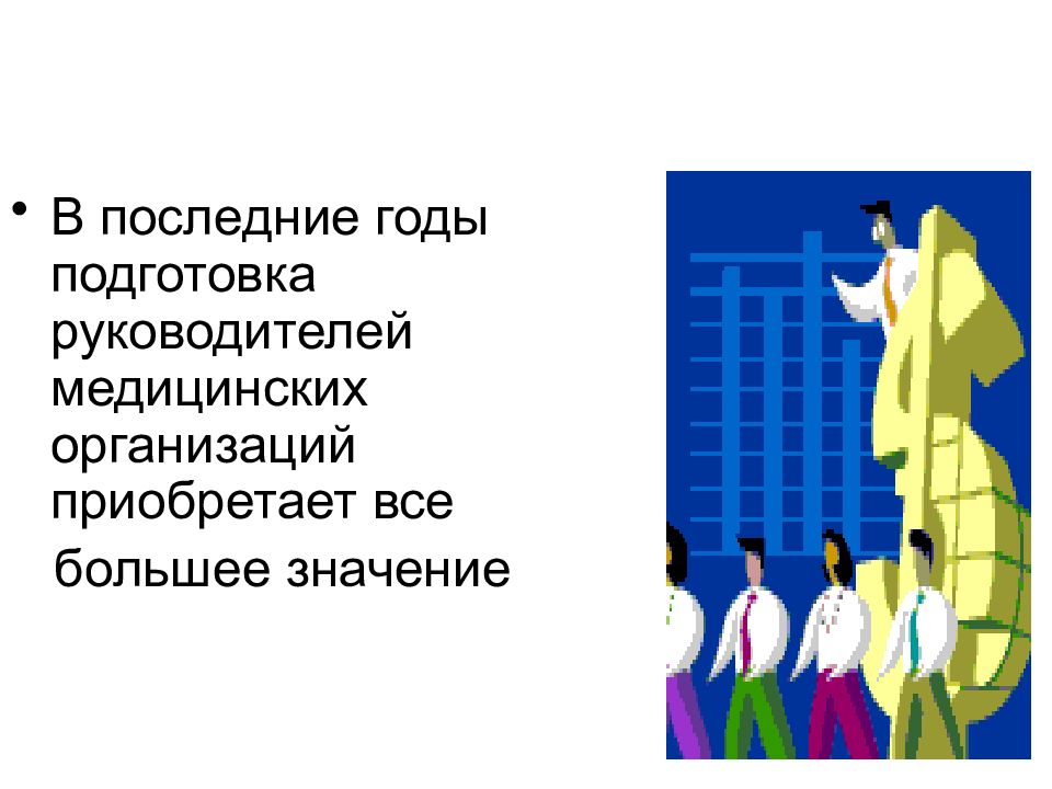 В последние годы подготовка руководителей медицинских организаций приобретает все большее значение