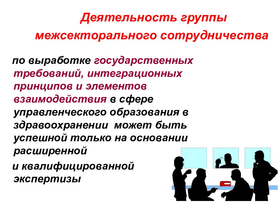 по выработке государственных требований, интеграционных принципов и элементов взаимодействия в сфере управленческого образования в здравоохранении может быть успешной только на основании расширенной и квалифицированной экспертизы