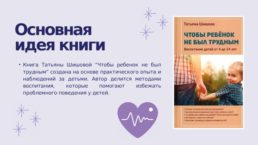 Основная идея книги Книга Татьяны Шишовой “Чтобы ребенок не был трудным” создана на основе практического опыта и наблюдений за детьми. Автор делится методами воспитания, которые помогают избежать проблемного поведения у детей.