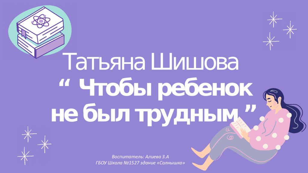 Татьяна Шишова “ Чтобы ребенок не был трудным ” Воспитатель: Алиева З.А ГБОУ Школа №1527 здание «Солнышко»