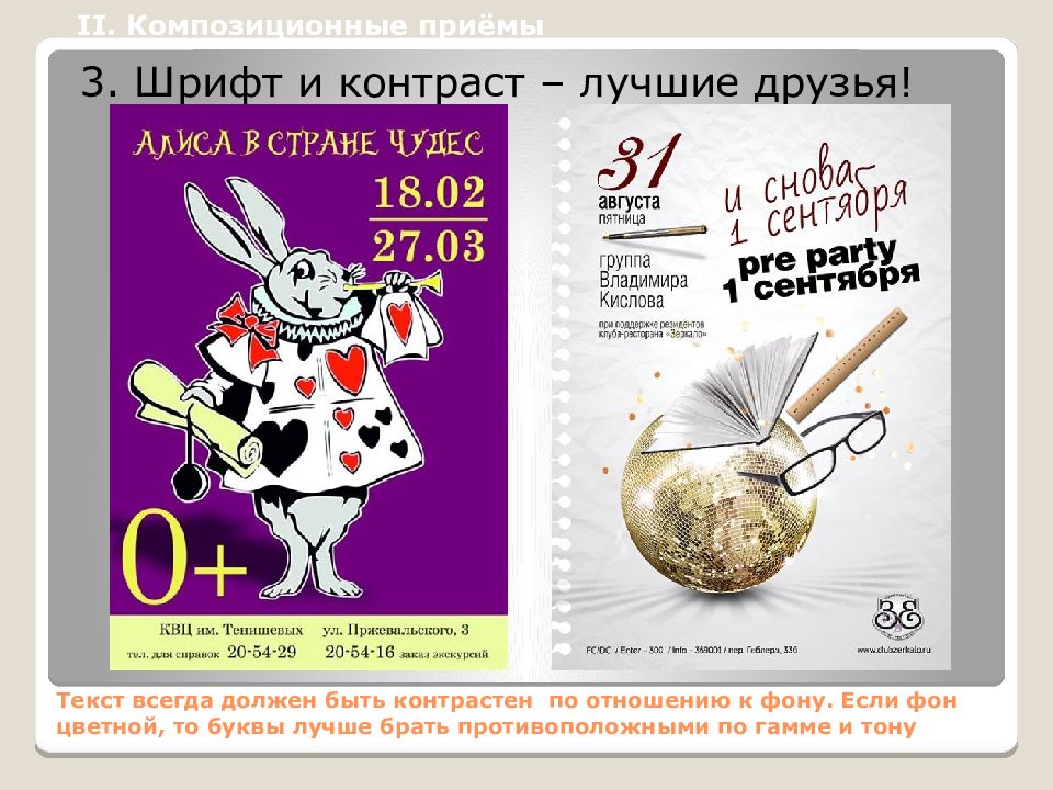 3. Шрифт и контраст – лучшие друзья! II. Композиционные приёмы