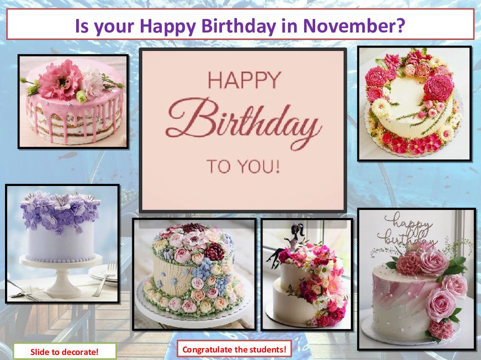 Is your Happy Birthday in November? Congratulate the students! Slide to decorate!