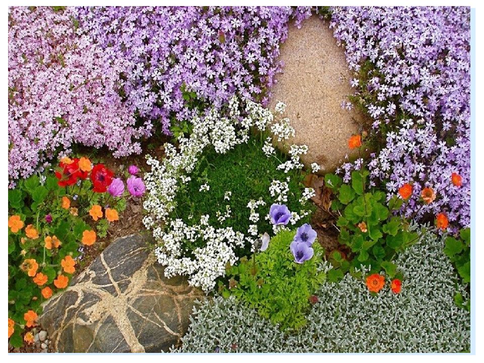 Среди раннецветущих — все те же обриета, арабис, барвинок, фиалки. Раннее цветение Растения покрывают землю цветочным потоком, настолько плотным, что из-за него зачастую даже не видно зелени.