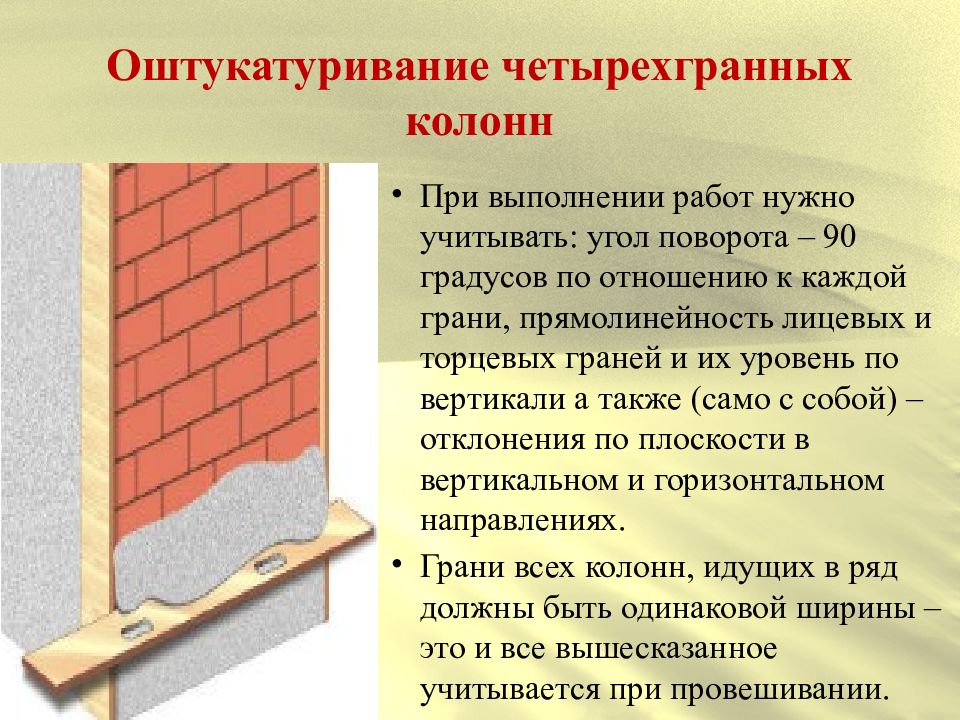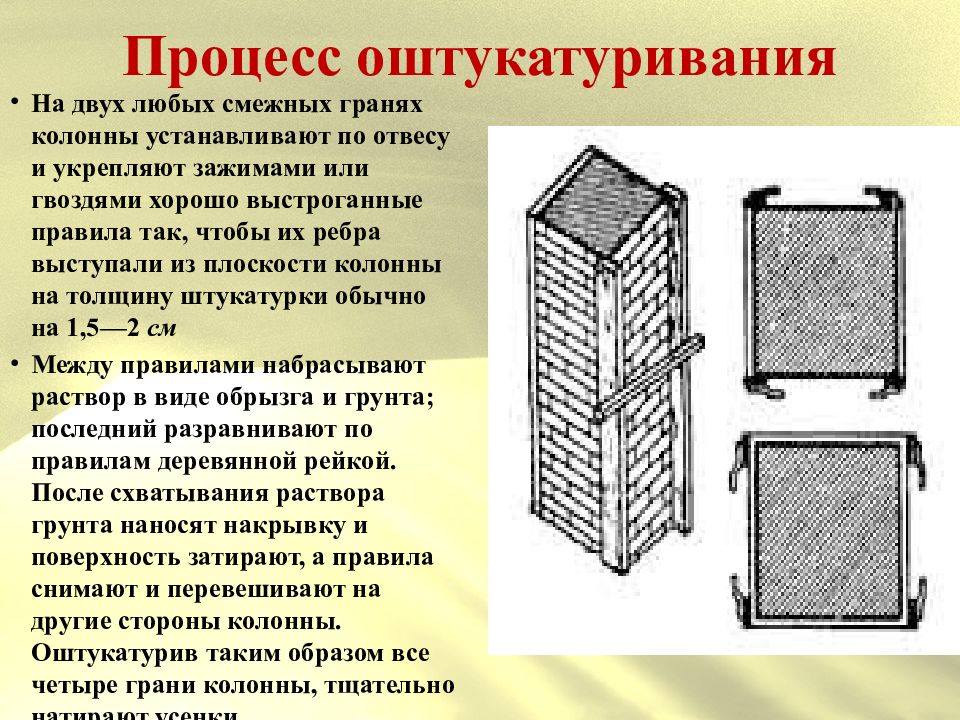 Слайд 8: Оштукатуривание четырехгранных колонн