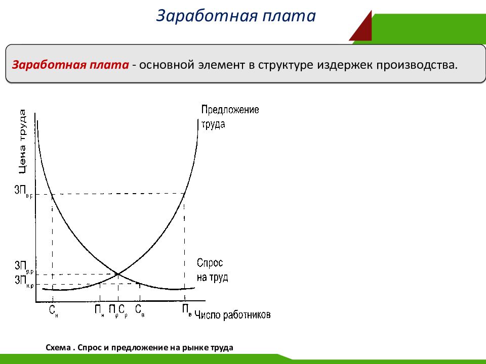 Заработная плата ‑ основной элемент в структуре издержек производства. Схема. Спрос и предложение на рынке труда
