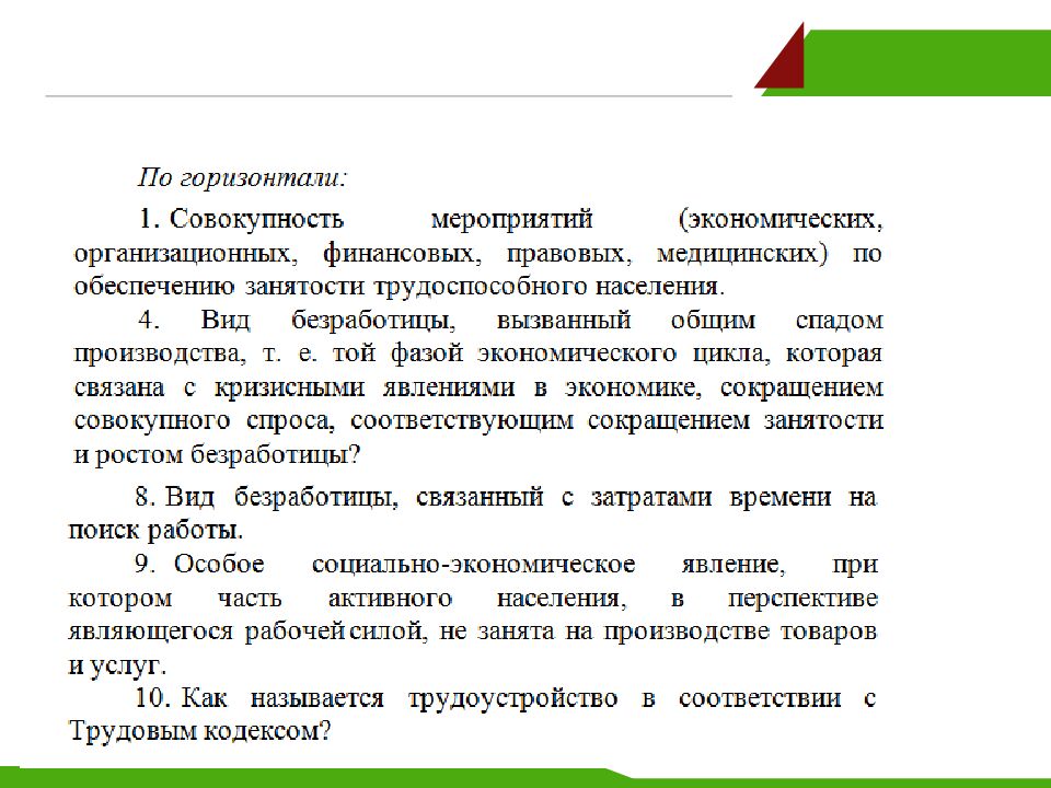 Слайд 33: Вопросы для самопроверки (безработица)