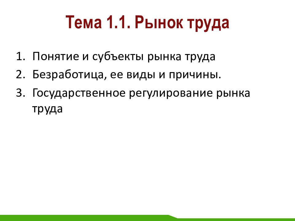 Первый слайд презентации: Тема 1.1. Рынок труда