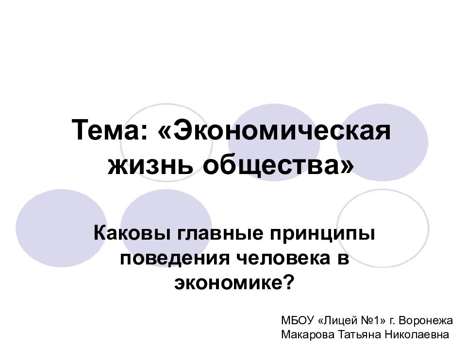 Каковы главные принципы поведения человека в экономике? МБОУ «Лицей №1» г. Воронежа Макарова Татьяна Николаевна