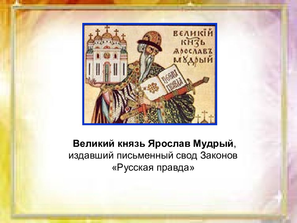 Великий князь Ярослав Мудрый, издавший письменный свод Законов «Русская правда»