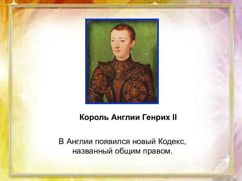 Король Англии Генрих II В Англии появился новый Кодекс, названный общим правом.