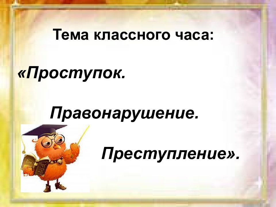 Тема классного часа: «Проступок. Правонарушение. Преступление».
