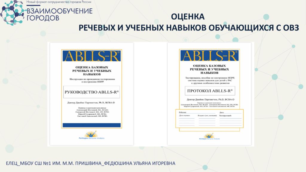 ЕЛЕЦ_МБОУ СШ №1 ИМ. М.М. ПРИШВИНА_ФЕДЮШИНА УЛЬЯНА ИГОРЕВНА ОЦЕНКА РЕЧЕВЫХ И УЧЕБНЫХ НАВЫКОВ ОБУЧАЮЩИХСЯ С ОВЗ