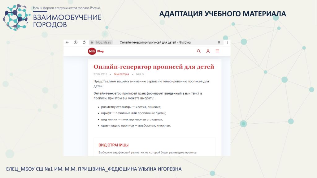 ЕЛЕЦ_МБОУ СШ №1 ИМ. М.М. ПРИШВИНА_ФЕДЮШИНА УЛЬЯНА ИГОРЕВНА АДАПТАЦИЯ УЧЕБНОГО МАТЕРИАЛА