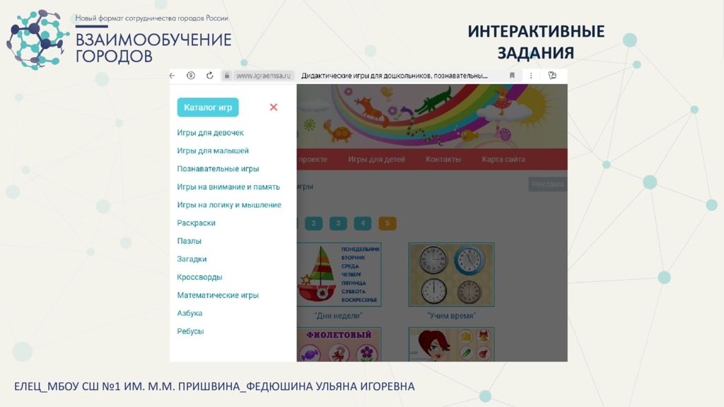 ЕЛЕЦ_МБОУ СШ №1 ИМ. М.М. ПРИШВИНА_ФЕДЮШИНА УЛЬЯНА ИГОРЕВНА ИНТЕРАКТИВНЫЕ ЗАДАНИЯ
