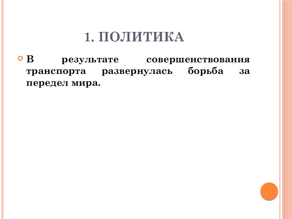 В результате совершенствования транспорта развернулась борьба за передел мира.