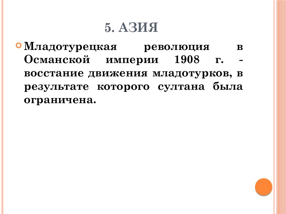 Младотурецкая революция в Османской империи 1908 г. - восстание движения младотурков, в результате которого султана была ограничена.