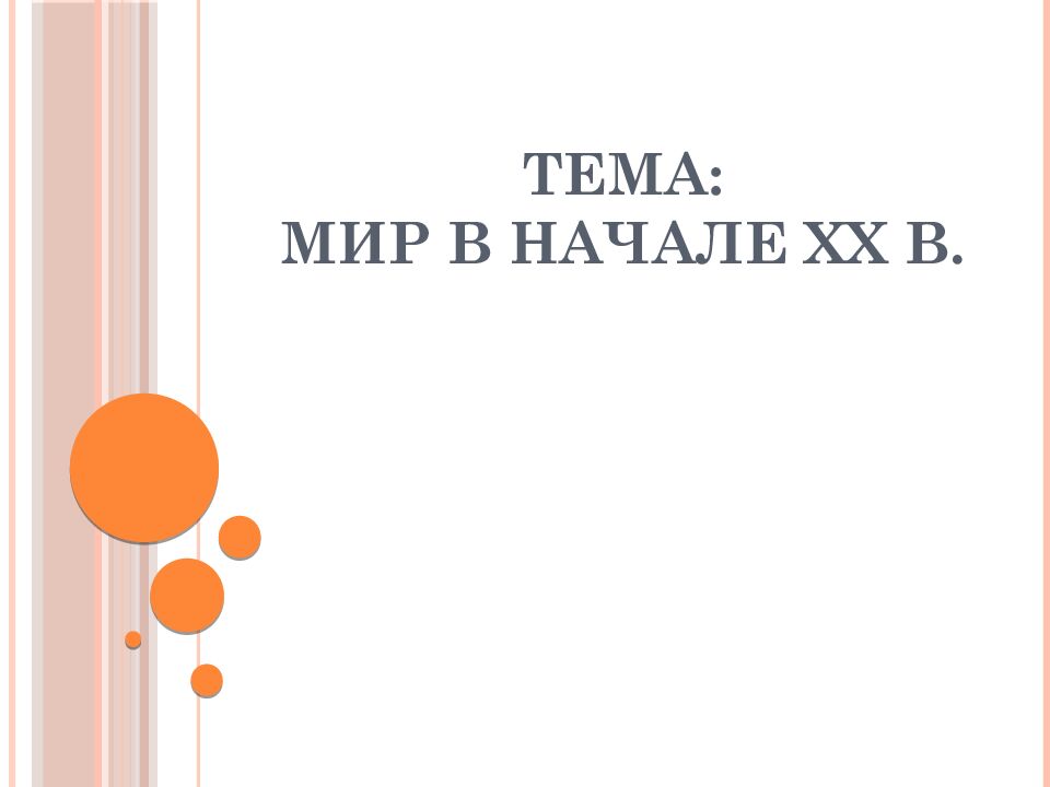 Первый слайд презентации: Тема: Мир в начале ХХ в