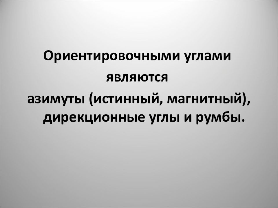 Ориентировочными углами являются азимуты (истинный, магнитный), дирекционные углы и румбы.