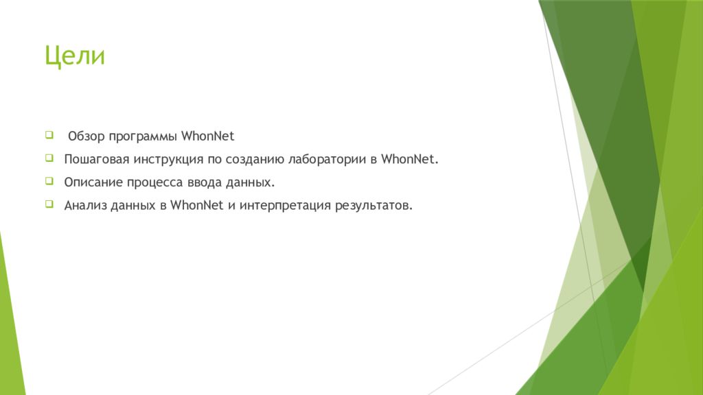 Обзор программы WhonNet Пошаговая инструкция по созданию лаборатории в WhonNet. Описание процесса ввода данных. Анализ данных в WhonNet и интерпретация результатов.