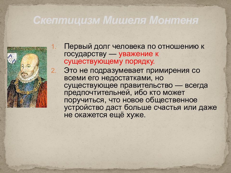 Слайд 5: Скептицизм Мишеля Монтеня (1533-1592)