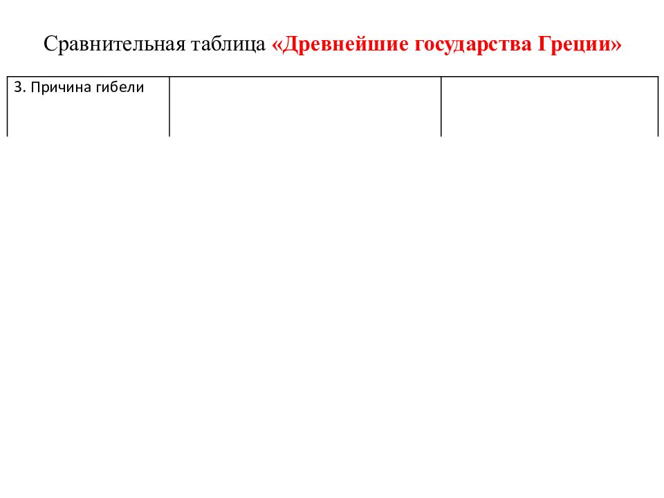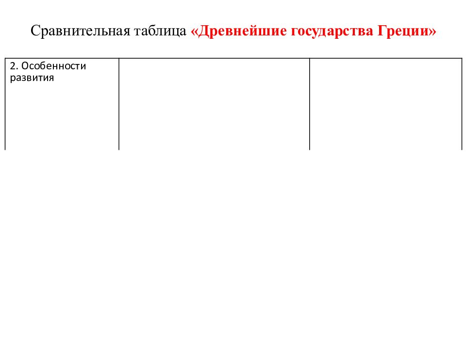 2. Особенности развития Сравнительная таблица «Древнейшие государства Греции»