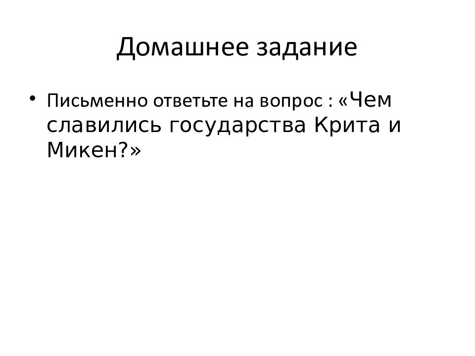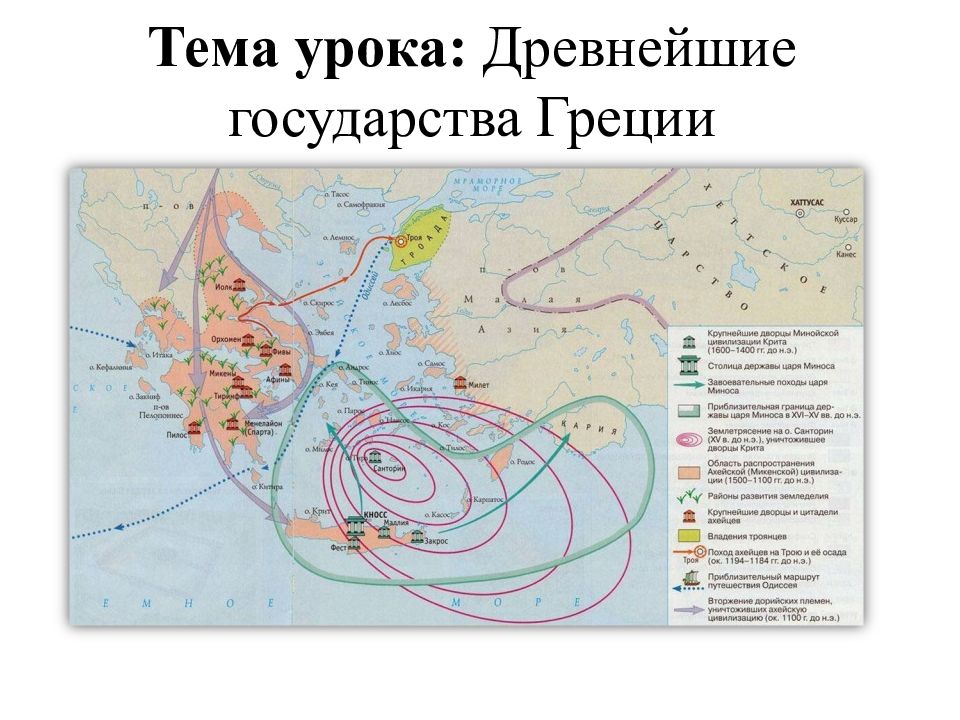 Государство Критская цивилизация Микенская цивилизация 1. Где и когда появились государства государство? Какой город стал столицей? Остров Крит, 16-15 в. до н. э. Столица - Кносс Полуостров Пелопоннес, 16 в. до н. э. столица – Микены.