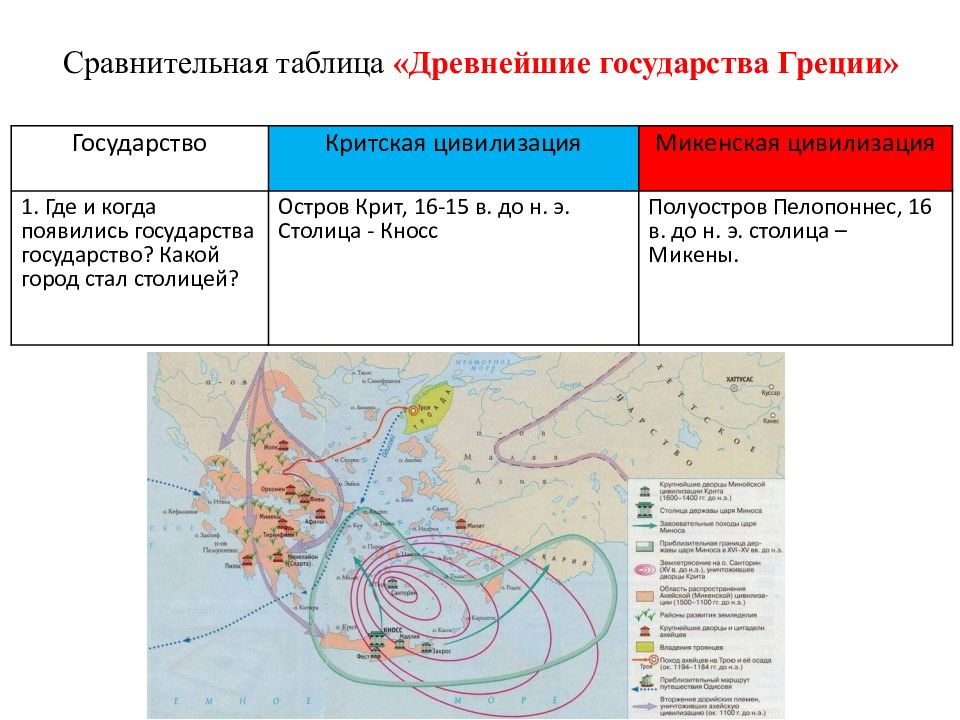 Слайд 4: Сравнительная таблица «Древнейшие государства Греции»