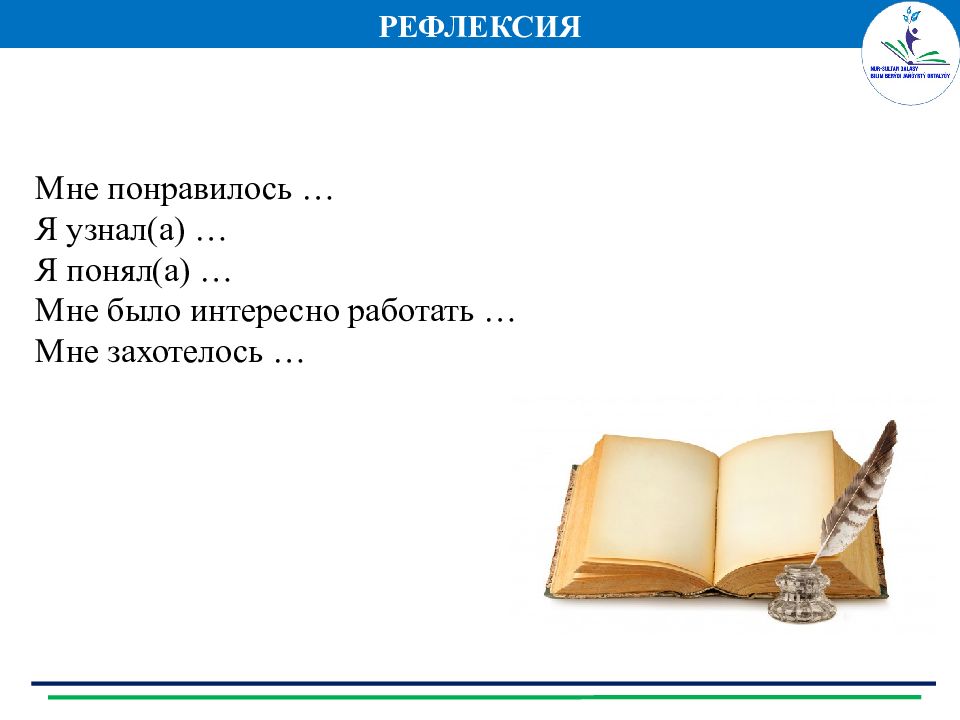 Рефлексия РЕФЛЕКСИЯ Мне понравилось … Я узнал(а) … Я понял(а) … Мне было интересно работать … Мне захотелось …