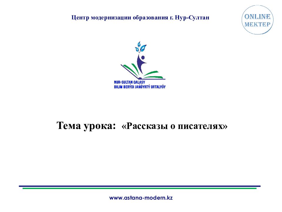 Тема урока: «Рассказы о писателях» Центр модернизации образования г. Нур-Султан www.astana-modern.kz