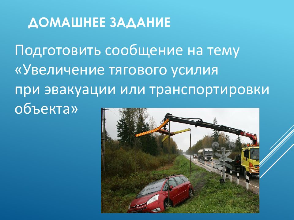 Подготовить сообщение на тему «Увеличение тягового усилия при эвакуации или транспортировки объекта»