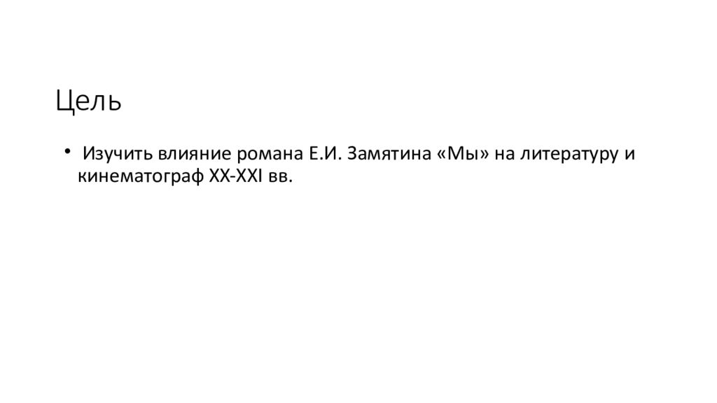 Изучить влияние романа Е.И. Замятина «Мы» на литературу и кинематограф XX - XXI вв.
