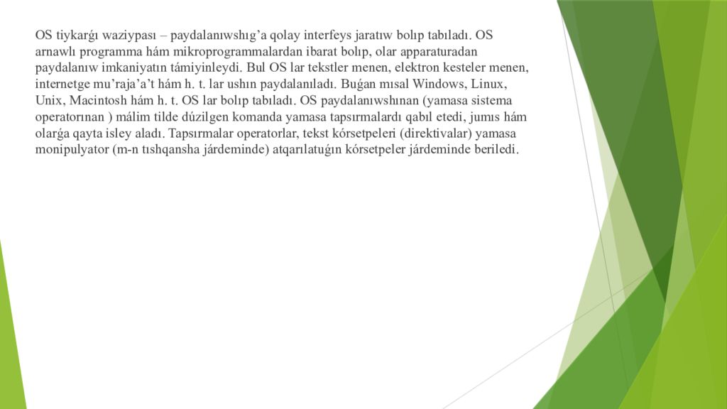 Последний слайд презентации: TEMA. Zamanagóy operatsion sistemalar