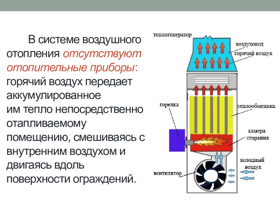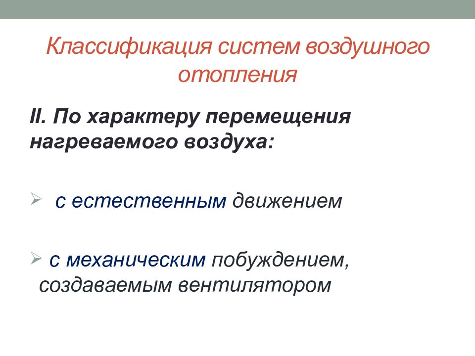 II. По характеру перемещения нагреваемого воздуха : с естественным движением с механическим побуждением, создаваемым вентилятором