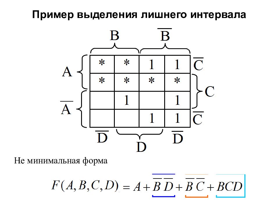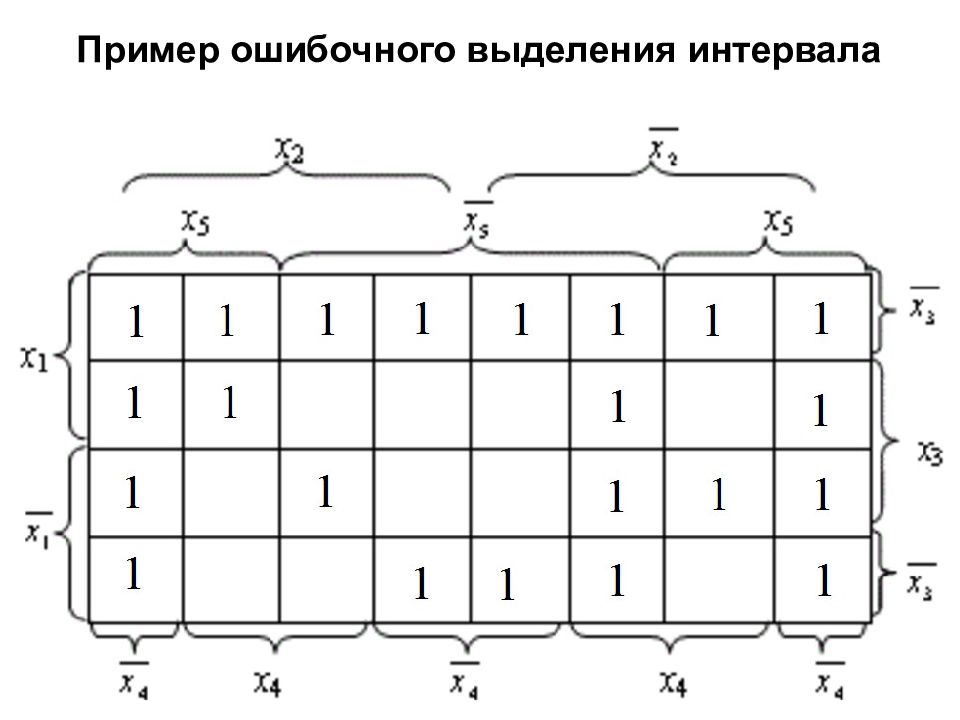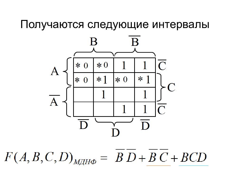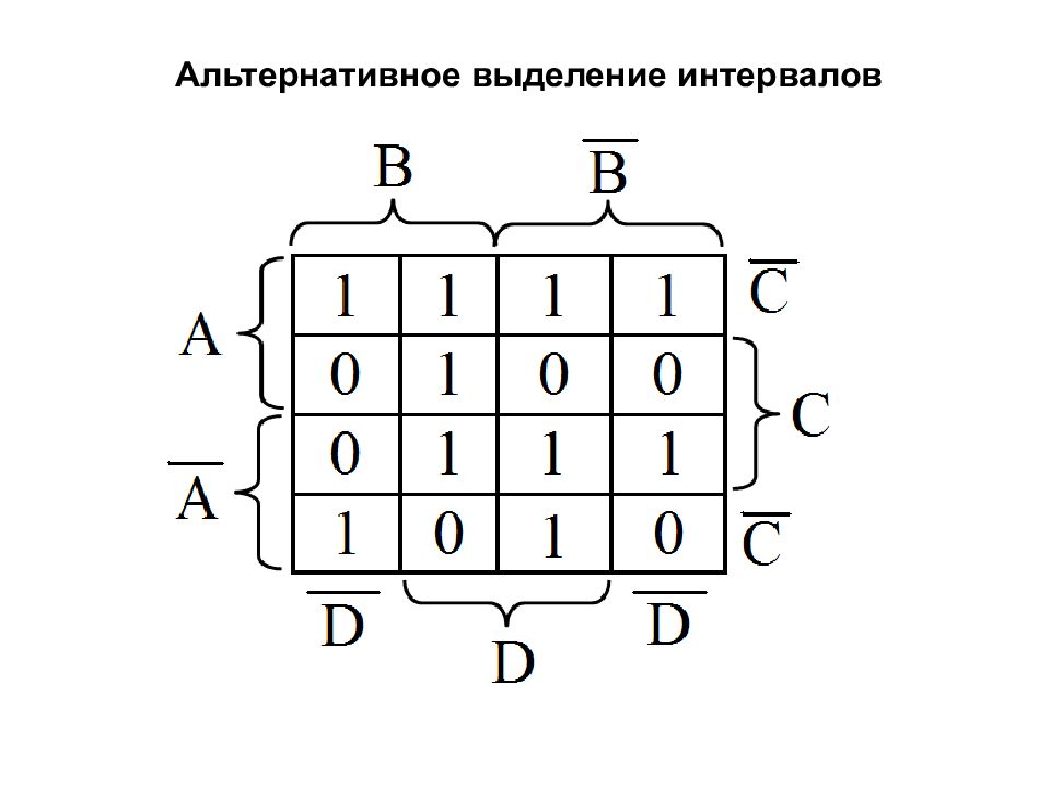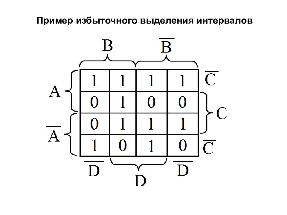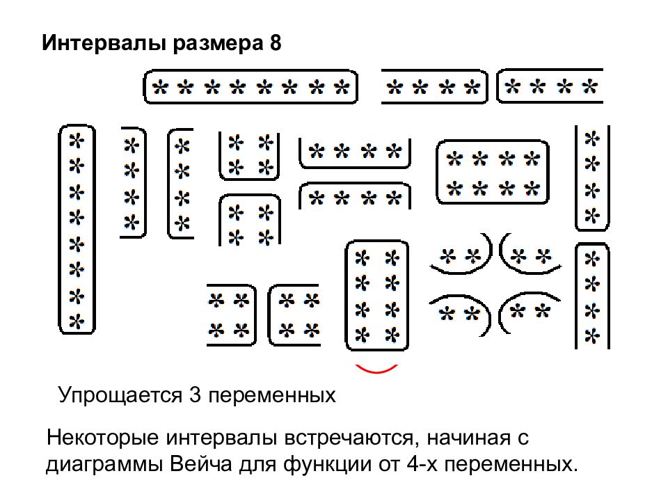 Интервалы размера 8 Упрощается 3 переменных Некоторые интервалы встречаются, начиная с диаграммы Вейча для функции от 4-х переменных.