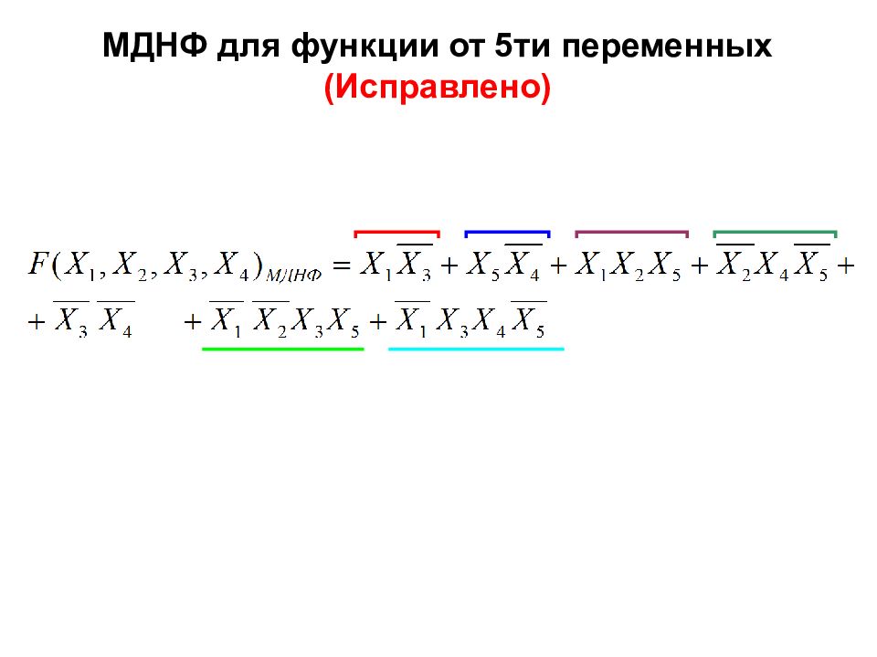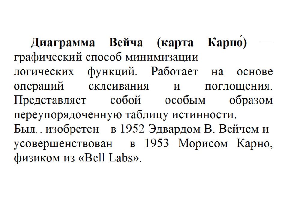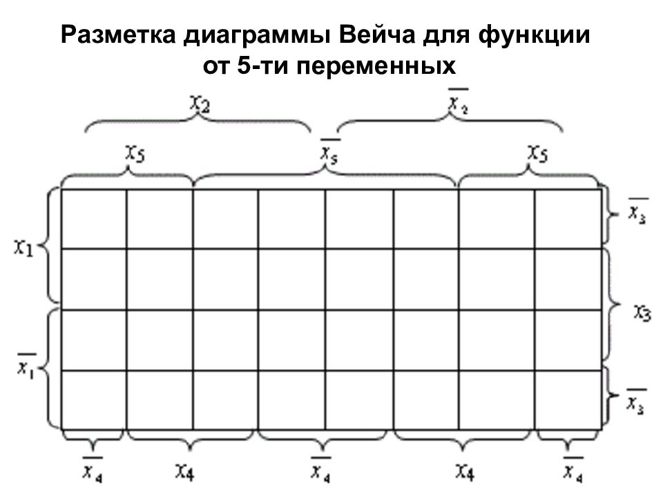 Пример построения диаграммы Вейча для функции от 4 - х переменных (МДНФ)