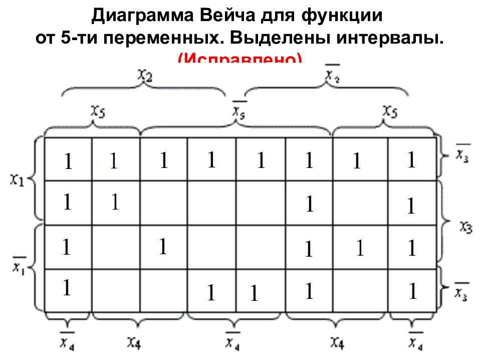 Диаграмма Вейча для функции от 5-ти переменных. Выделены интервалы. (Исправлено)