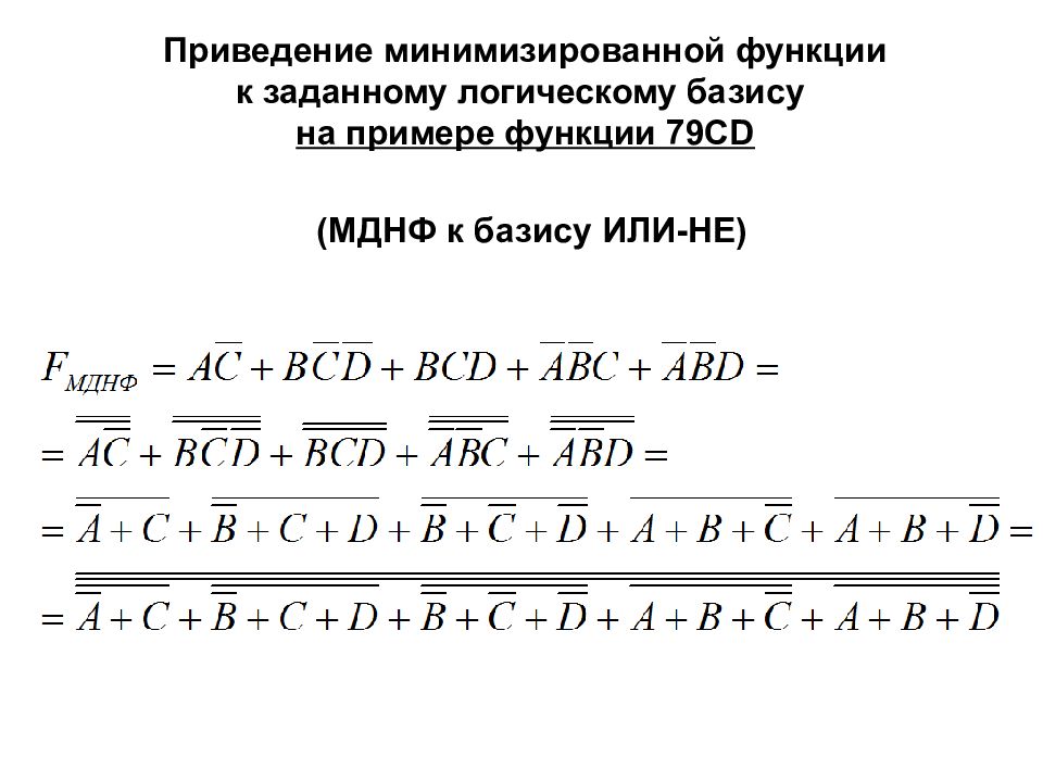 Приведение минимизированной функции к заданному логическому базису на примере функции 79 CD (МДНФ к базису ИЛИ-НЕ)