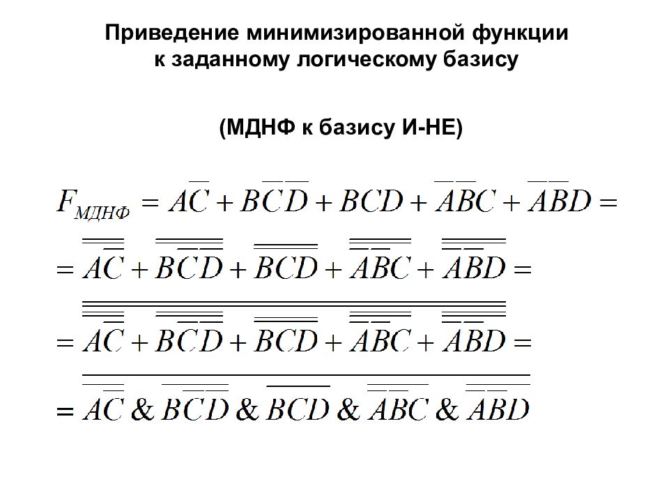 Приведение минимизированной функции к заданному логическому базису (МДНФ к базису И-НЕ)