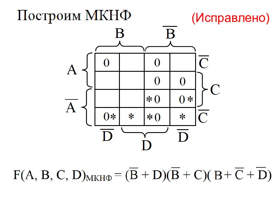 Пример построения диаграммы Вейча для функции от 4 - х переменных (МКНФ)